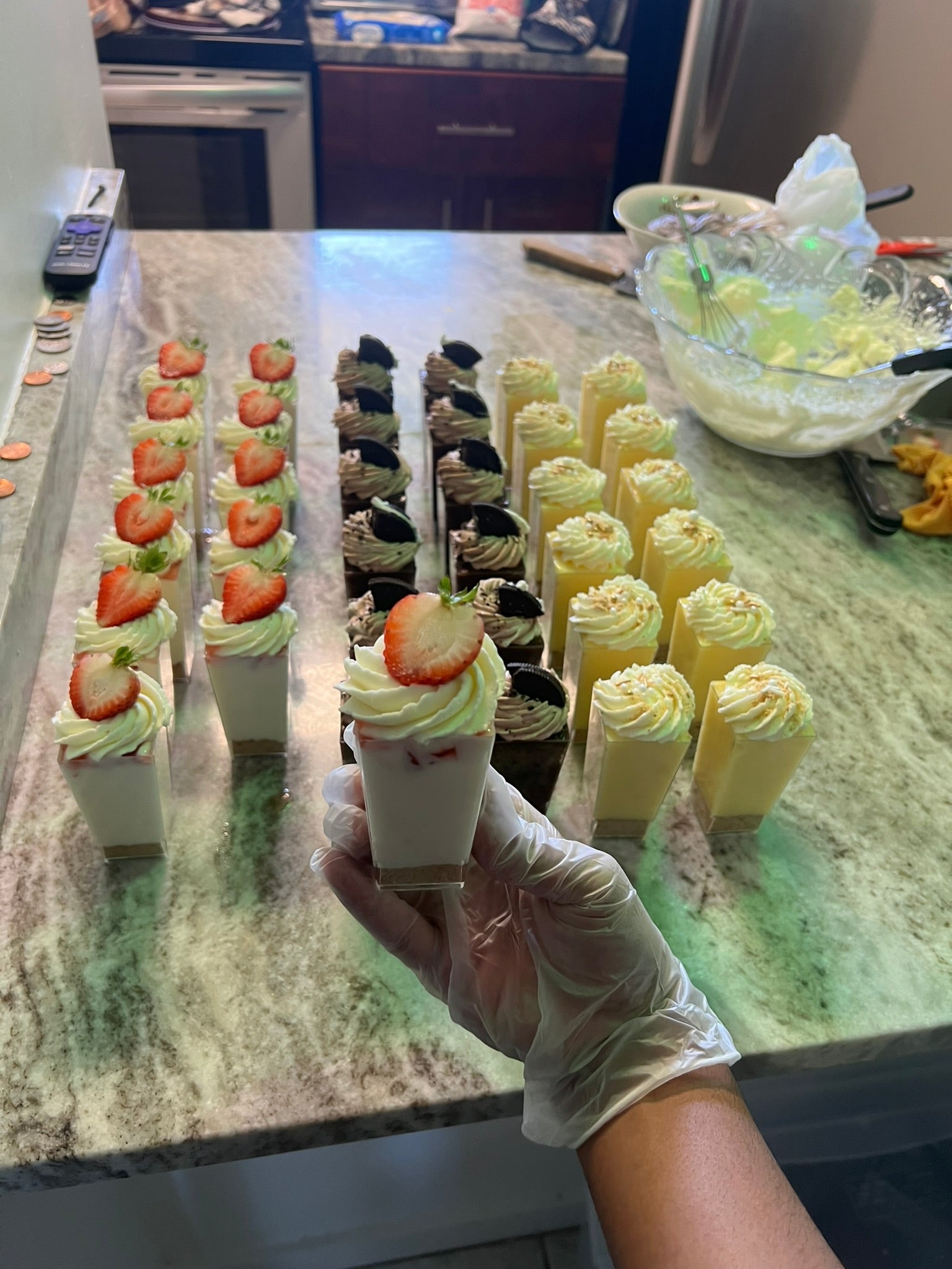 Each dozen of our handcrafted dessert shooters brings pure joy in every bite-sized layer. Perfect for parties, celebrations, or treating yourself!